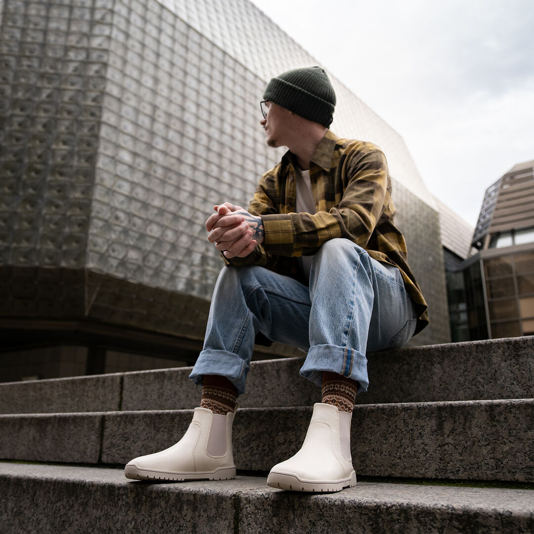 Zeitloses Design und Barfußkomfort vereint: Unsere Chelsea Boots sind dein verlässlicher Begleiter für die Übergangszeit. Dank des wasserabweisenden Materials trotzen sie wechselhaftem Wetter, während das weiche Innenfutter selbst an kühlen Tagen für ein wohliges Tragegefühl sorgt.